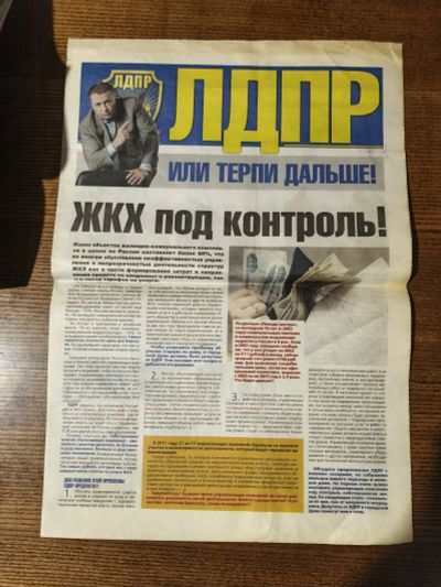 350руб.Агит газета ЛДПР от 14092012г и от 28.09.2012 годов - цена за 1шт