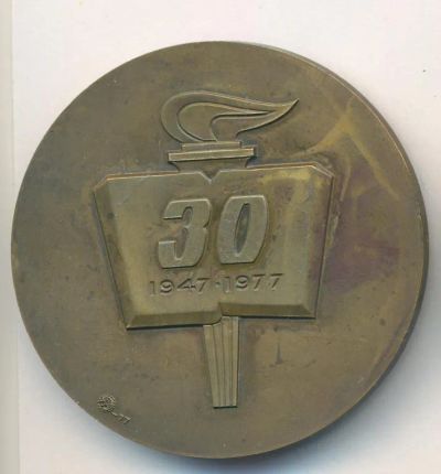СССР 1977 Медаль 30 лет Товарищество Знание Украинская ССР D64mm желтый мет