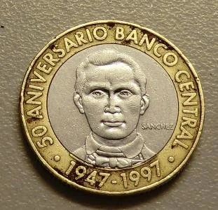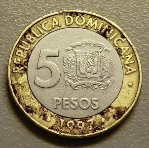 5 песо 1997 Доминиканская республика биметалл 5 pesos 1997 dominicana доминикана