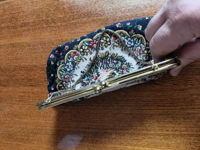 Сумочка театральная гобеленовая дамская винтаж женский кошелек вышивка беседка в цветах как новая
